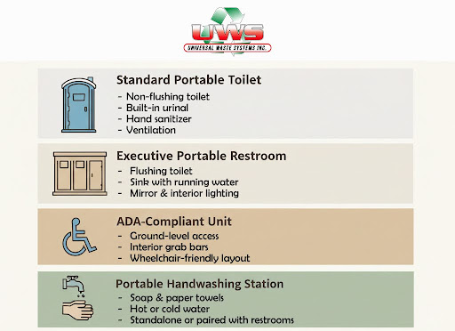 Many providers also offer handwashing stations, dumpsters, recycling bins, and sewer solutions. Bundling services with a single provider is cost-effective and simplifies logistics. Universal Waste Systems handles everything from sanitation to cleanup, making project coordination easier.