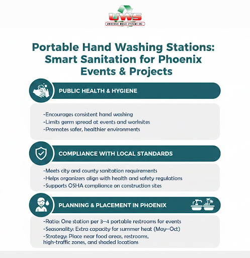 - Not sure how many hand washing stations your Phoenix event or project needs? Contact Universal Waste Systems to review your attendance, project scope, and food service requirements—we’ll match you with optimal quantities and placement strategies for Phoenix conditions.